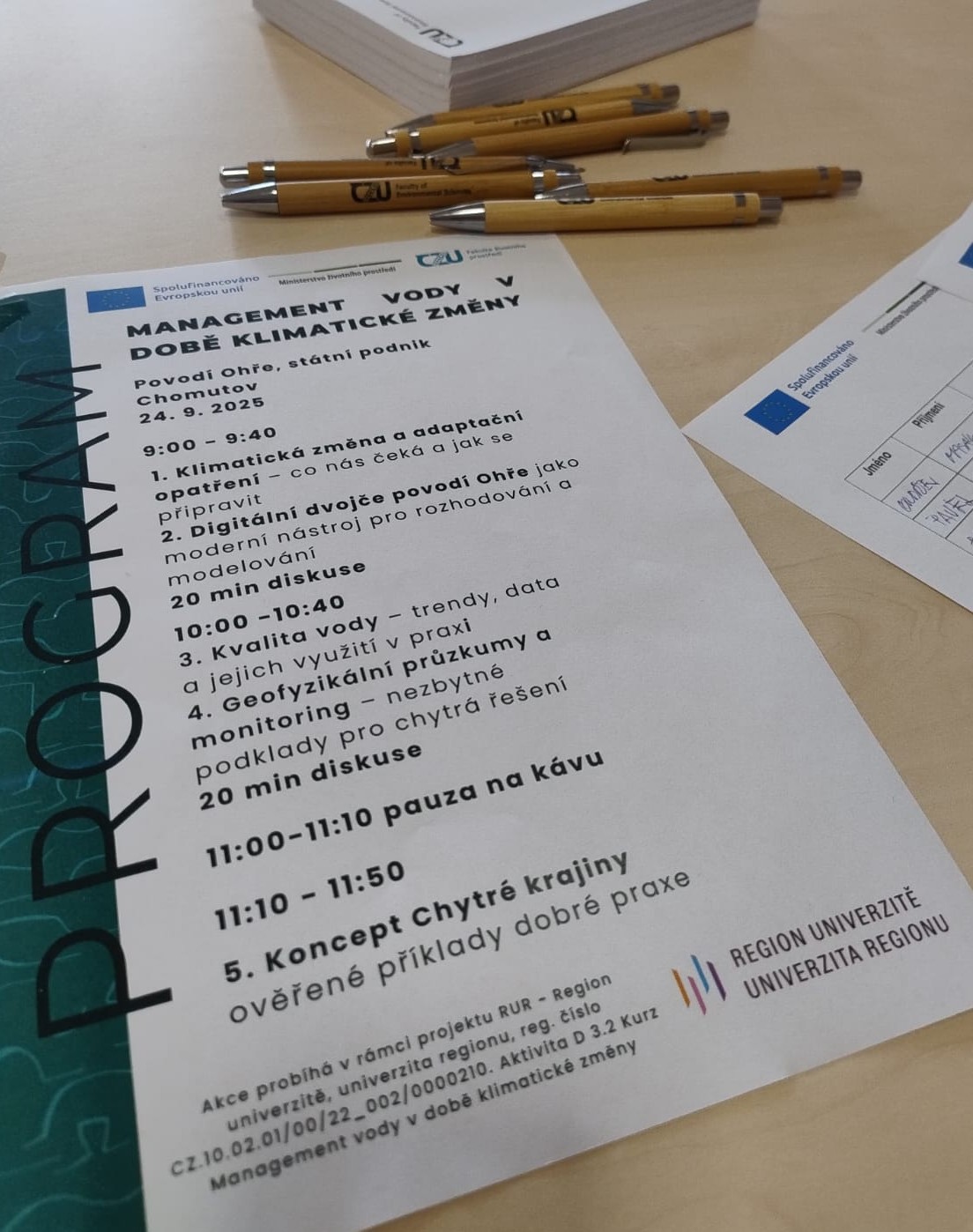 On September 24th, 2025, our team conducted a specialized course on "Water Management in Times of Climate Change", prepared as part of the RUR – Region to University, University to Region project.. The event took place at the headquarters of the state-owned company Povodí Ohře in Chomutov, with the participation of the company's management. A total of 28 people took part in the course.